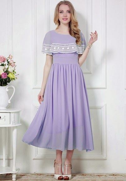 Purple Plain Short Sleeve Chiffon Maxi Dress